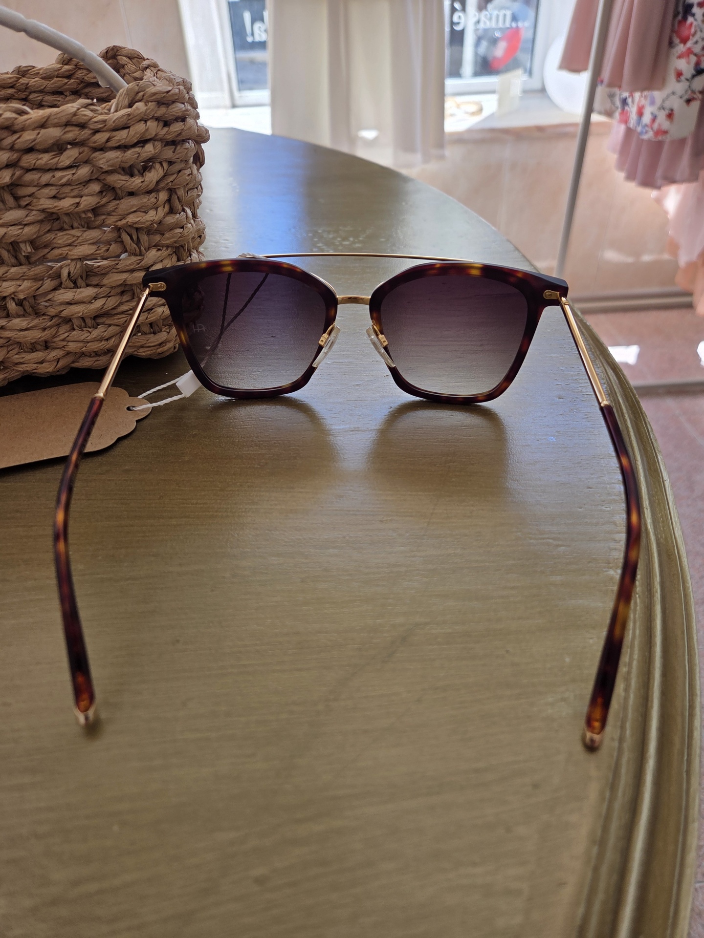 Marca: Ana Hickmann (Original). Design: Armação quadrada em massa com padrão tartaruga. Detalhes: Ponte dupla e hastes finas em metal dourado, conferindo leveza e sofisticação. Lentes: Degradê (mais escuras no topo), ideais para uma transição suave de luminosidade. Estado: A estrear