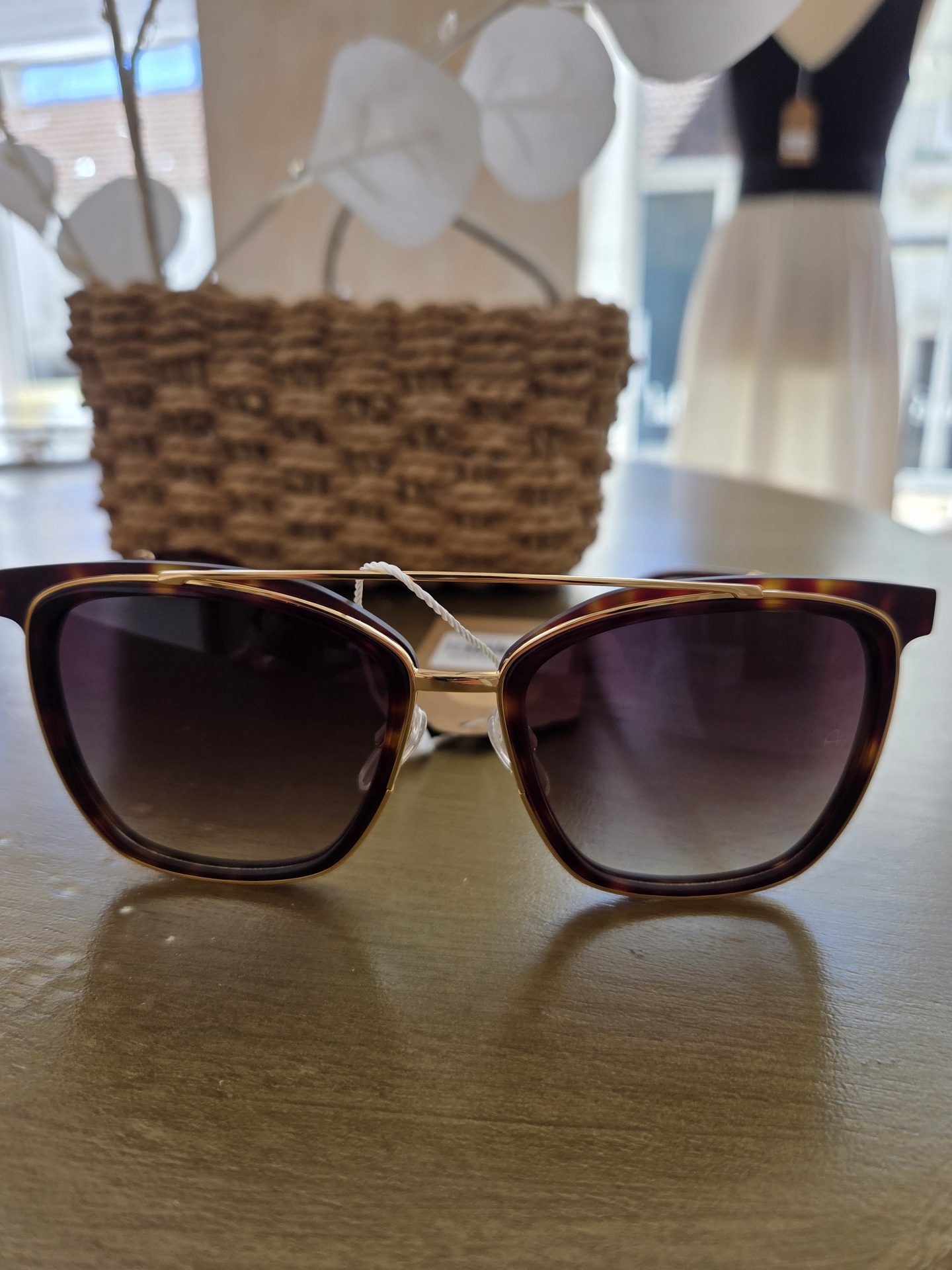 Eleva o teu visual com estes óculos de sol Ana Hickmann, uma peça que combina o design clássico com toques modernos de luxo. Com uma armação robusta em padrão tartaruga e uma ponte dupla dourada distinta, estes óculos são o acessório ideal para quem não abdica da elegância.