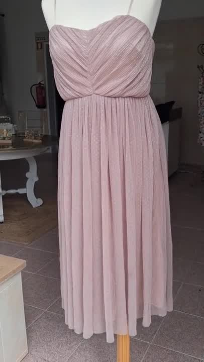 Este vestido da H&M é a escolha ideal para momentos especiais. Num tom rosa envelhecido super feminino, destaca-se pelo seu trabalho plissado em toda a saia e pelo corpete drapeado que valoriza o decote de forma delicada.
