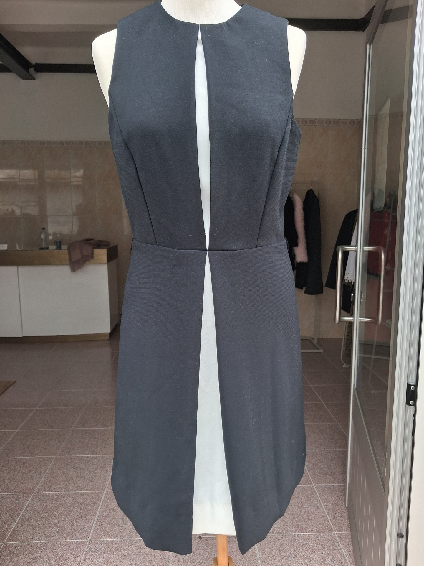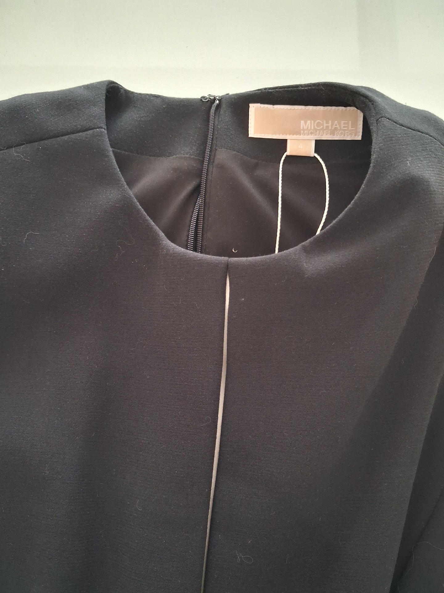 Este vestido da Michael Kors é a definição de elegância inteligente. O contraste marcante entre o preto e a linha central branca não é apenas um detalhe estético, mas um truque de design pensado para alongar e definir a silhueta de forma impecável.