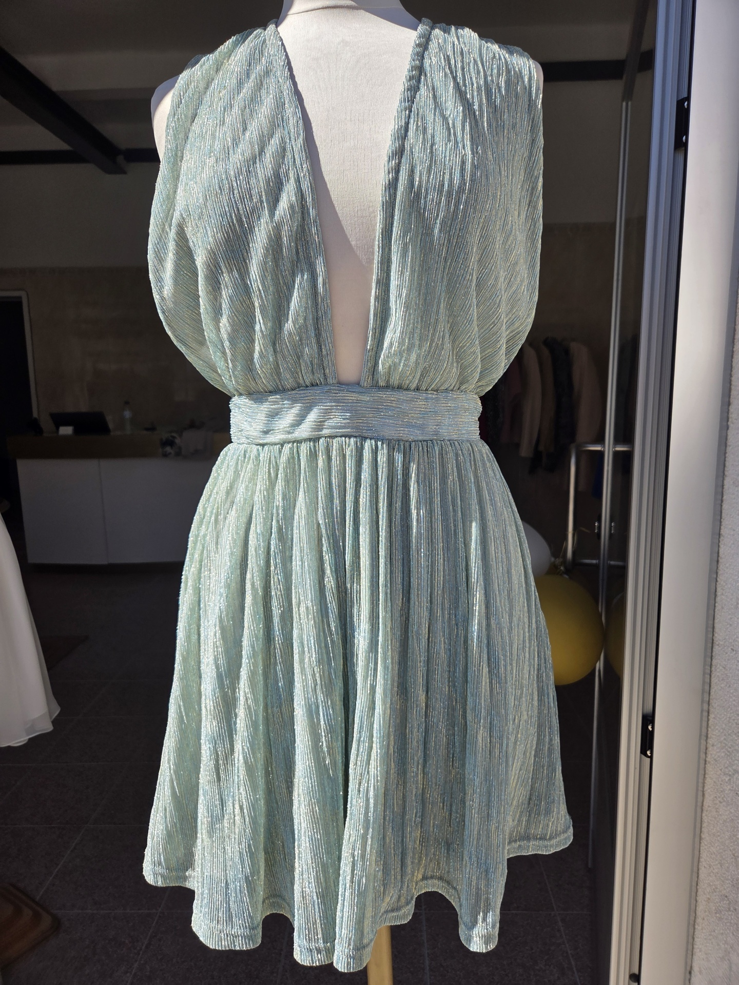 Prepara-te para brilhar com este vestido curto plissado da marca escandinava NLY ONE.
